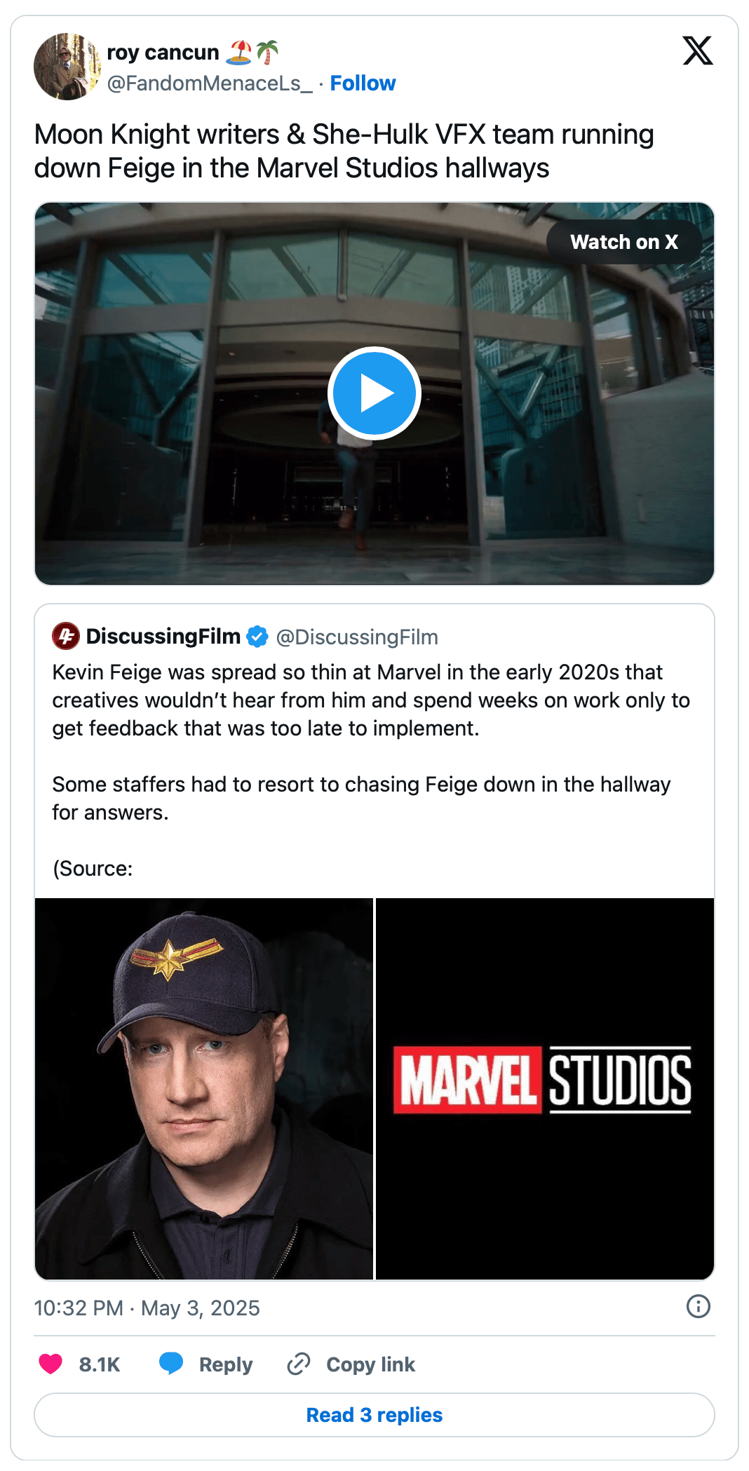 🦸♂️ Marvel's streaming-era hangover is getting its first remedy. Disney's superhero factory is hitting the reset button after Marvel Studios president Kevin Feige admitted their content felt "more like homework than entertainment." The culprit? Disney's growth-at-all-costs streaming strategy led to an overwhelming flood of interconnected Marvel shows on Disney+. Industry insiders dubbed it the "no new fans club"—only die-hard viewers could keep up with the increasingly complex storylines. At peak production, Marvel's production schedule became so overstuffed that executives couldn't properly review content while season budgets ballooned to $200M. Marvel's now scaling back annual releases and focusing on standalone stories casual viewers can actually follow. 'Thunderbolts*' strong A- CinemaScore debut is the first test of this reboot, which Marvel hopes will prime audiences for upcoming ‘Avengers’ films. That mysterious asterisk? It hints at a franchise rebranding we won't spoil, but represents Marvel's desperate bid to start a new chapter and reclaim its former box office glory.
