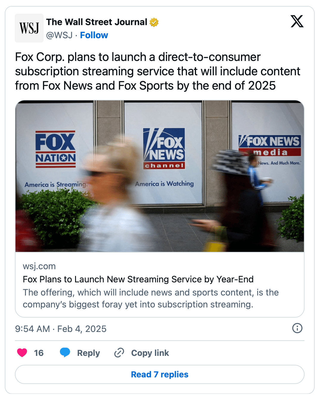 🎯📺 Even cable TV's biggest holdouts are finally caving to streaming. Fox announced a late-2025 streaming service with their sports, news, and entertainment content, following ESPN's similar move—proving even the most bundle-dependent players can no longer resist streaming's pull. The streaming sports field is getting crowded: Fox's service launches as ESPN goes direct-to-consumer, Disney acquires Fubo TV, and Amazon and Peacock beef up their sports offerings. Meanwhile, a major power shift is underway: streaming platforms will outspend traditional broadcasters on content for the first time in 2025 ($95B vs. $91B), marking streaming's dominance in the entertainment landscape. Fox is keeping expectations "modest" though, targeting cord-cutters while trying to preserve their cable revenue.