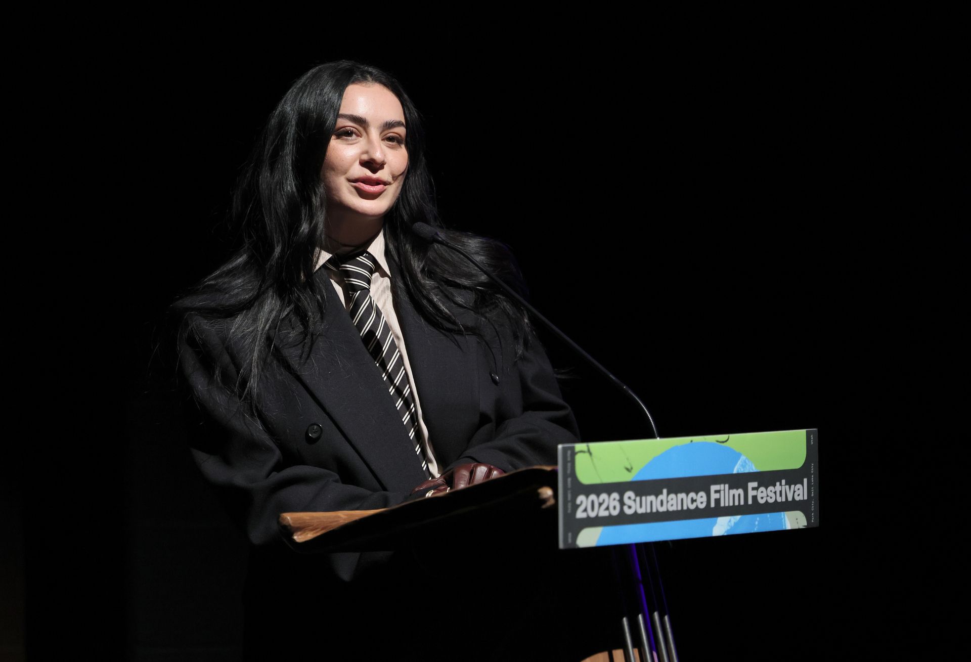 Charli XCX at the 'The Moment' premiere, Sundance 2026. (Dia Dipasupil/Getty Images)