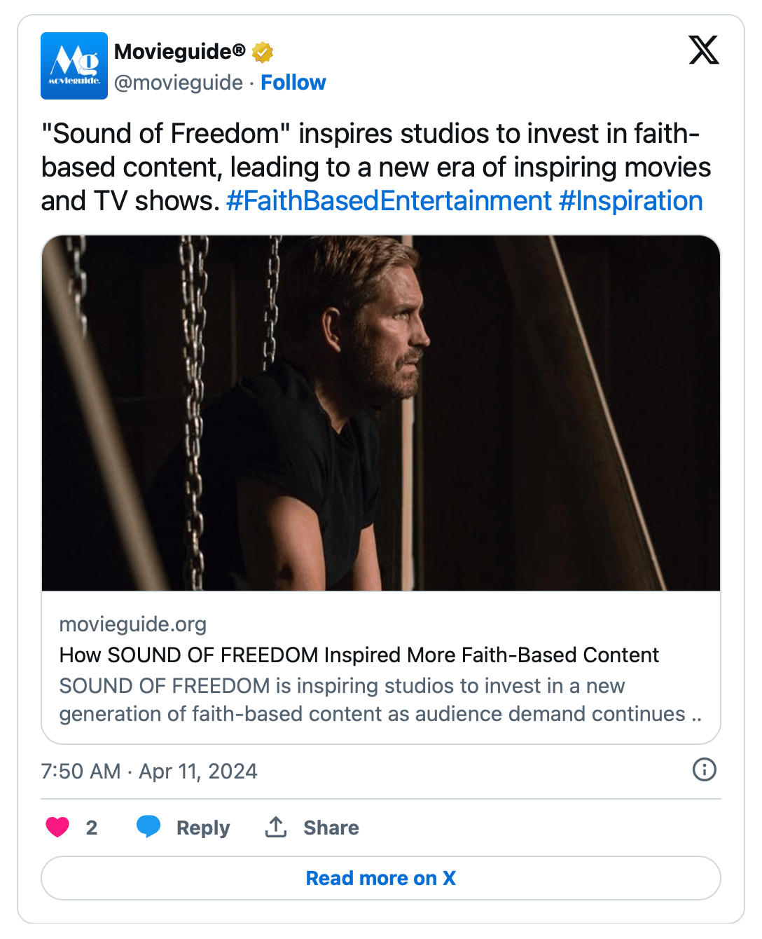 🎥 Box Office Boom: The numbers don’t lie: faith-based films are big business. Just look at ‘Sound of Freedom,’ which raked in a whopping $250M worldwide.