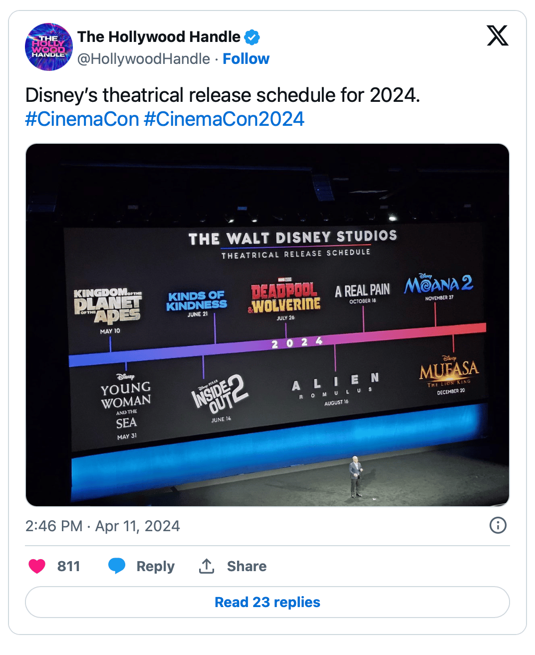 CEO Bob Iger's "quality over quantity" mantra was evident in the studio's focused slate, including ‘Deadpool and Wolverine,’ ‘Moana 2,’ and 20th Century standouts.