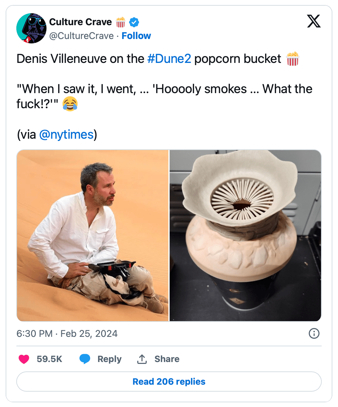 👋 Good morning! Denis Villeneuve has stirred the pot in recent press for ‘Dune: Part Two.’ He says, “frankly, I hate dialog. I don’t remember movies because of a good line, I remember movies because of a strong image.” The hot take has Twitter users riled up and weighing in. What are your thoughts?