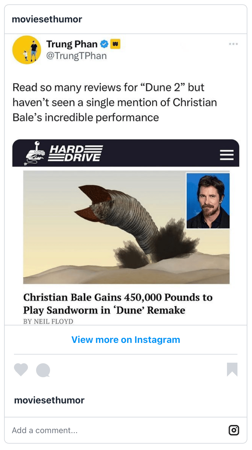 🎬🍿 The IMAX Renaissance: Over its opening weekend, ‘Dune: Part Two’ not only sold out IMAX screens worldwide but also marked a pivotal moment in what appears to be an IMAX renaissance. The film grossed over $82.5M in North America, and $32.2M from 809 IMAX screens alone, with every available seat snapped up. Directors like Denis Villeneuve and Christopher Nolan, with ‘Oppenheimer,’ are opting to shoot with IMAX cameras, betting big on the immersive experience that only giant screens can offer. This shift towards premium formats has IMAX CEO Richard Gelfond feeling bullish, noting a "global march towards premium" experiences outside the home. The success of films on IMAX screens has studios scrambling to secure their spot on the coveted release schedule. In fact, IMAX's summer 2025 calendar is already fully booked, with studios eager to avoid being left in the dust.