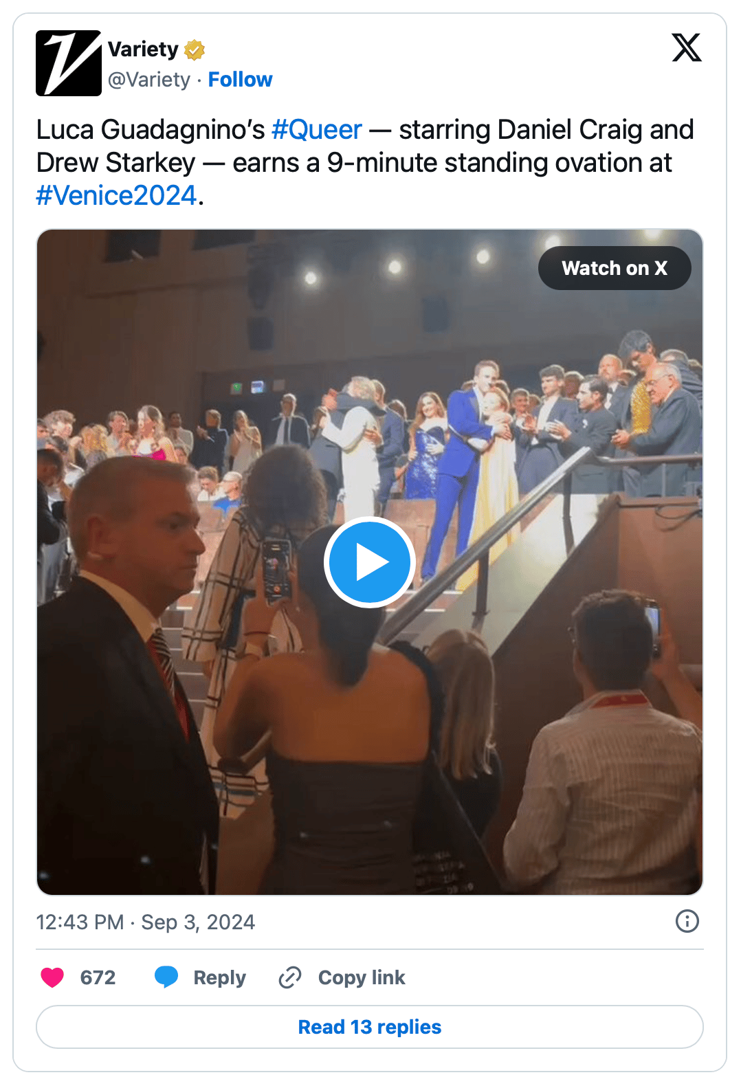 ‘Queer,’ Luca Guadagnino's adaptation, earned a 9.5-minute standing ovation. Daniel Craig's racy turn opposite Drew Starkey drew wild praise from the audience.