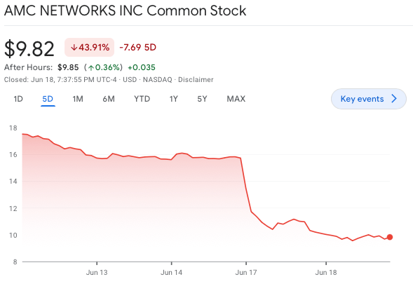 📉😰 AMC Networks (not the movie theater chain) has had a rough week. Their stock plummeted 31.1% after announcing plans to sell $125M in convertible senior notes, likely to pay off debt, but also for some vague "general corporate purposes" (aka, keeping the lights on). With rising interest rates and slumping sales, investors are spooked about the added debt and potential share dilution. This isn’t AMC’s first tumble—just four months ago, the stock dropped 20.7% after a weak earnings report. Even though AMC+ is making some headway with its ad-supported tier, the company is struggling with the shift from traditional TV to streaming. It's a harsh reality for cable TV-reliant players like AMC, Paramount, and Warner Bros. Discovery. As Q2 earnings loom, the pressure is on for these media giants to adapt to the streaming era or brace for more turbulence.