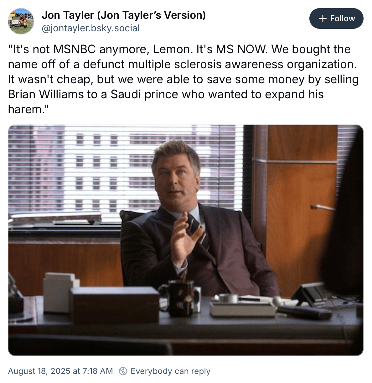 Looking ahead… MSNBC insists its editorial mission won't change, just the name. The full transition happens by year's end when Versant launches.