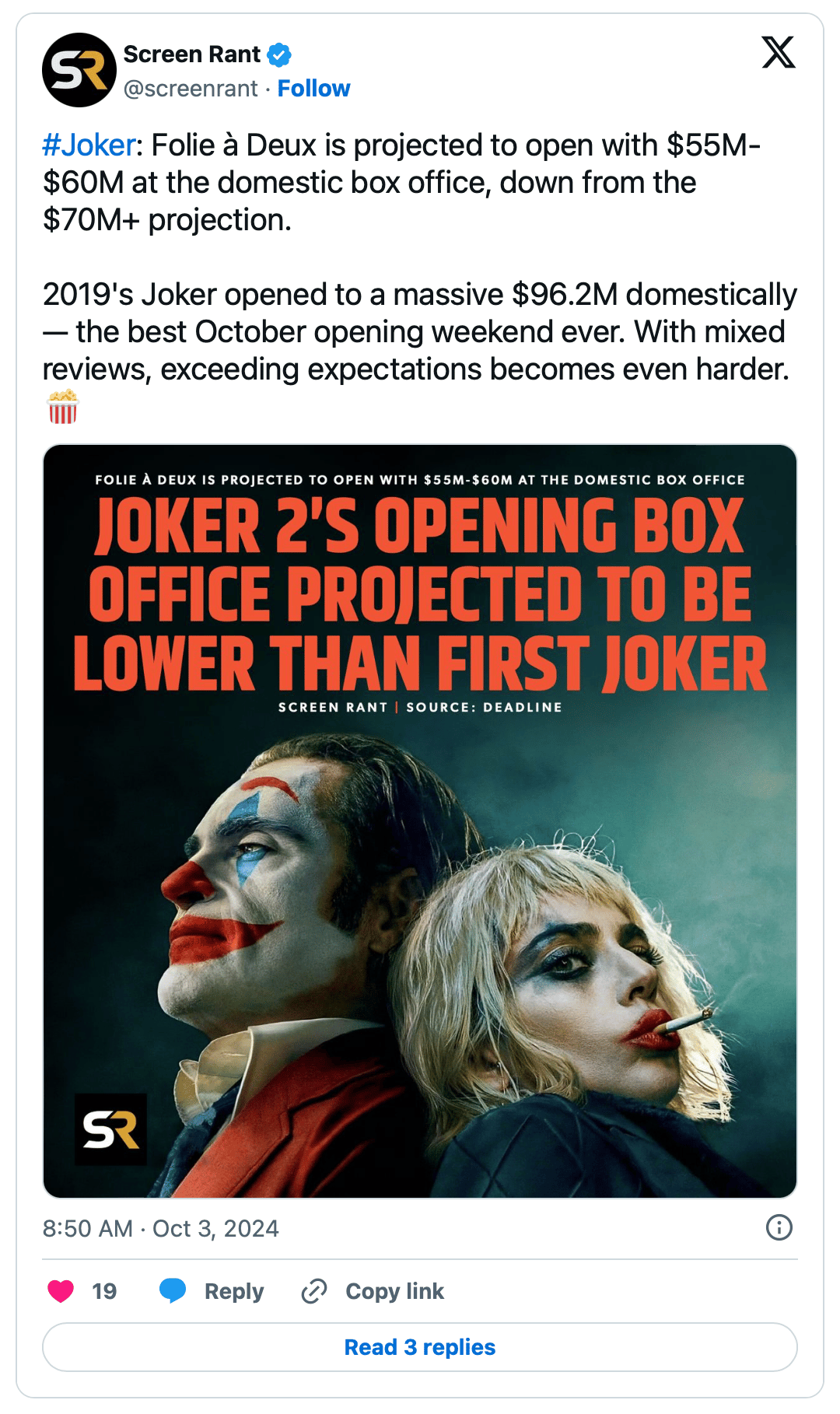 🎭💸 ‘Joker: Folie à Deux’ might not be laughing its way to the bank this weekend. Warner Bros.’ $190M sequel is tracking for a $55-60M opening—a steep drop from the original’s impressive $96M debut. But why is this highly anticipated follow-up struggling in a market where sequels typically thrive?