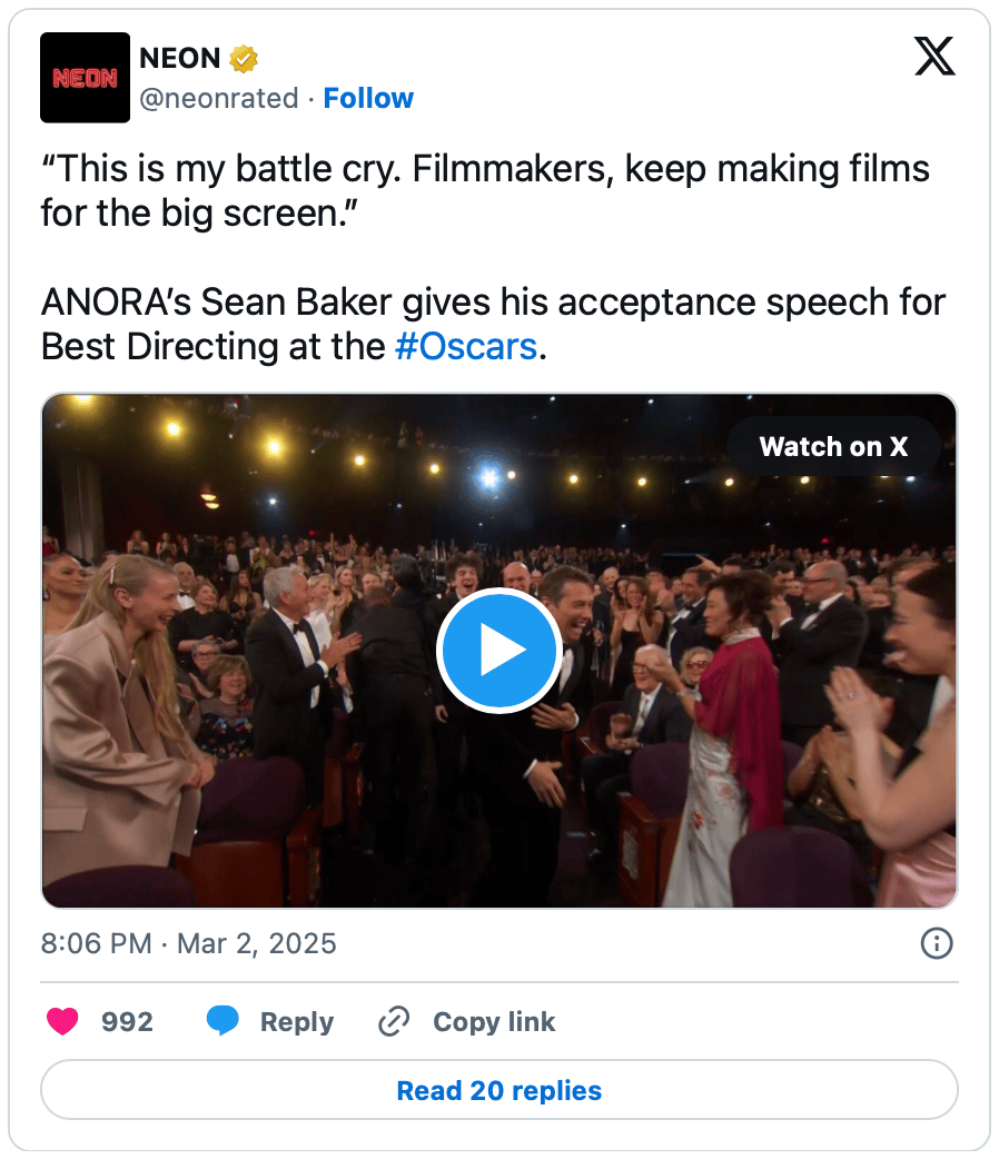 Looking ahead… The strong advertiser demand proves live events remain a goldmine even as streaming dominates scripted content. With the Oscars now airing on both ABC and Hulu (and ABC's deal expiring in 2028), this year's ceremony offers a glimpse of Hollywood's biggest night transforming into a multi-platform spectacle. Behind the scenes, the Academy has reportedly begun shopping for its next TV home, with Netflix and Amazon in the mix as potential suitors seeking global rights.