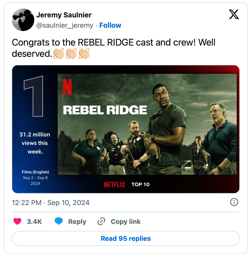 🎬🔝 Netflix's ‘Rebel Ridge’ just pulled off a rare feat: hitting #1 without A-list stars or a bloated budget. This Jeremy Saulnier-directed thriller, starring Aaron Pierre (who replaced John Boyega), proves there's still appetite for well-crafted, character-driven stories in streaming. It's a win for quality over spectacle, suggesting Netflix can succeed with thoughtful, mid-budget films. ‘Rebel Ridge’ might just spark a strategy shift, showing that director-driven projects can captivate viewers as much as pricey blockbusters.