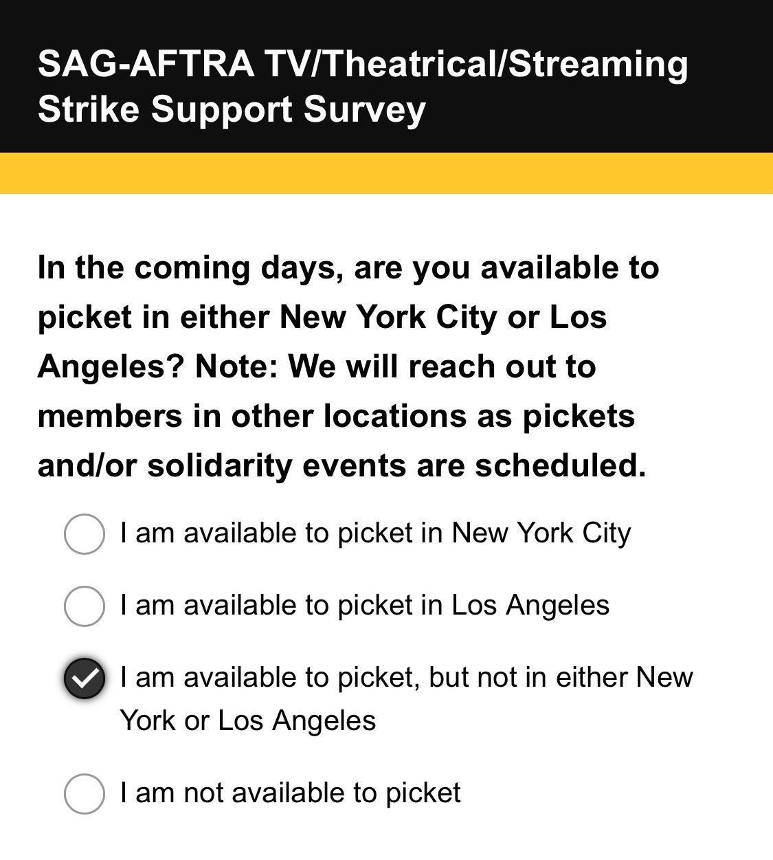 They’ve sent out a survey (below👇🏻) to their 160,000 members to see who’s up for picketing and maybe even leading the charge if it all goes down. It's like they're doing a headcount before the big dance. Negotiations are in progress, and they have until Wednesday to strike a deal with Alliance of Motion Picture and Television Producers. If things don’t work out, it’s gonna be their first film and TV strike in 40 years. Here's hoping it doesn't come to that!