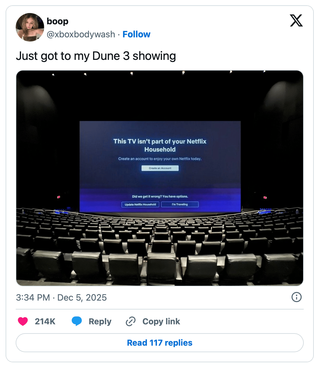 In case you missed the big news last week: Netflix is buying Warner Bros. for $82.7B, and Hollywood spent the weekend freaking out. Pretty much every guild, union, and lawmaker came out swinging. Here's what they're saying: