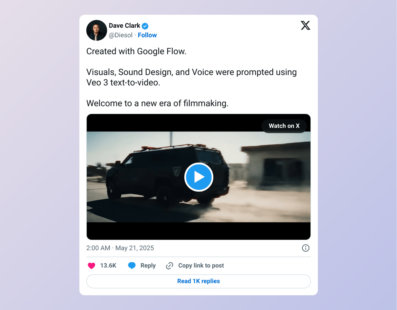 Social media had a collective meltdown this week after Google unveiled Flow, an AI platform that's generating the most realistic, consistent video content anyone's seen from AI. Demo clips racked up hundreds of thousands of views within hours, with comments ranging from "this blew my mind" to variations of "we're all doomed."