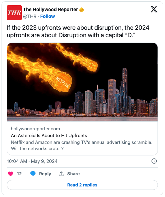 📺🚀 Streaming Storms Upfronts 2024: The 2024 TV upfronts, the annual event where networks present their upcoming programming to advertisers, are setting the stage for an epic showdown between legacy TV and streaming giants. Traditionally led by broadcast networks, this year’s event in New York showcases a dramatic turn with streaming giants stepping into the spotlight. Fresh off introducing ads, Amazon is determined to maximize its Prime Video reach, while Netflix plans an "immersive" spectacle for ad buyers at Chelsea Piers. Meanwhile, linear TV is facing an existential crisis, as its ad revenues plummet—apart from sports, which continue to draw significant interest. Analysts warn we might be witnessing the final throes of traditional TV advertising as we know it. With YouTube also making a strong play for a slice of the $20B ad market pie, and traditional networks scrambling to keep up, this upfront season could be more cutthroat than ever.